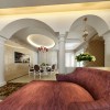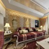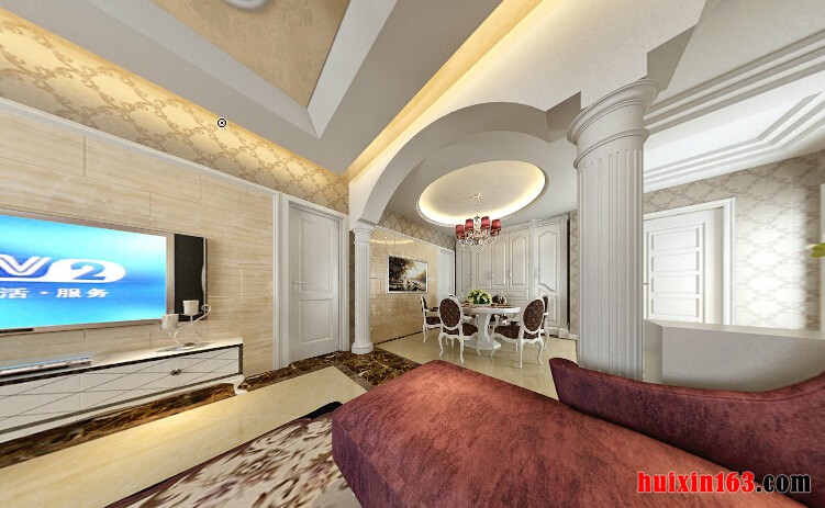 一栋现代简约的别墅会让人感觉非常的别扭,看起来就像是工厂或是办公室。欧美风情或是中式古典的风格是现在家装的热宠,不过在家装中融入一些田园的元素,也能够达到意想不到的装饰效果。在客厅的电视背景墙上采用实木的木板作为装饰,地面上铺设田园风格的瓷砖,室内设计优雅的圆柱,将室内设计出室外田园的感觉。
