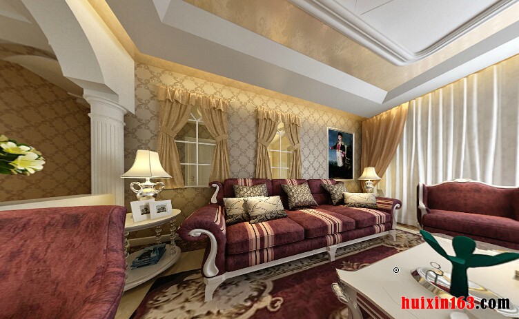 一栋现代简约的别墅会让人感觉非常的别扭,看起来就像是工厂或是办公室。欧美风情或是中式古典的风格是现在家装的热宠,不过在家装中融入一些田园的元素,也能够达到意想不到的装饰效果。在客厅的电视背景墙上采用实木的木板作为装饰,地面上铺设田园风格的瓷砖,室内设计优雅的圆柱,将室内设计出室外田园的感觉。