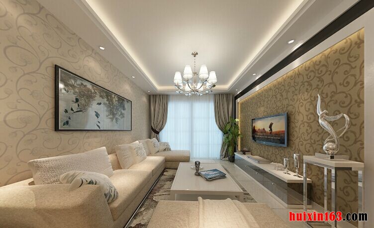 108平米的三居室,采用现代简约的装修风格,在本案例的设计当中,并没有过多的造型以及家具来约束空间,通过最简单直接的方式让居室多出一份轻巧与灵活,例如客厅的装饰布置,整体感觉一种时尚与婉约,恰到好处的留白处理,给人一种干净整齐的视觉感观,一盏量的吊灯安装将空间营造得更加唯美,个性的壁纸铺贴也展现出一种色彩看点,亮丽的地砖,白色的茶几以及米白色的沙发布艺,在色彩的搭配上,整体空间有着一种相似的感觉,墙面四周射灯的安装,局部明亮的光线,更是营造出一种繁星点缀的效果,落地窗的设计搭配上轻质的窗帘,也让空间变得比较唯美。