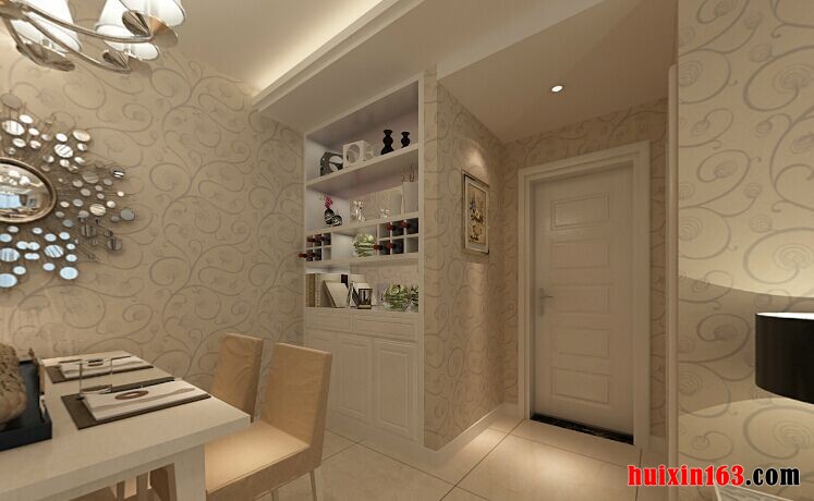 108平米的三居室,采用现代简约的装修风格,在本案例的设计当中,并没有过多的造型以及家具来约束空间,通过最简单直接的方式让居室多出一份轻巧与灵活,例如客厅的装饰布置,整体感觉一种时尚与婉约,恰到好处的留白处理,给人一种干净整齐的视觉感观,一盏量的吊灯安装将空间营造得更加唯美,个性的壁纸铺贴也展现出一种色彩看点,亮丽的地砖,白色的茶几以及米白色的沙发布艺,在色彩的搭配上,整体空间有着一种相似的感觉,墙面四周射灯的安装,局部明亮的光线,更是营造出一种繁星点缀的效果,落地窗的设计搭配上轻质的窗帘,也让空间变得比较唯美。