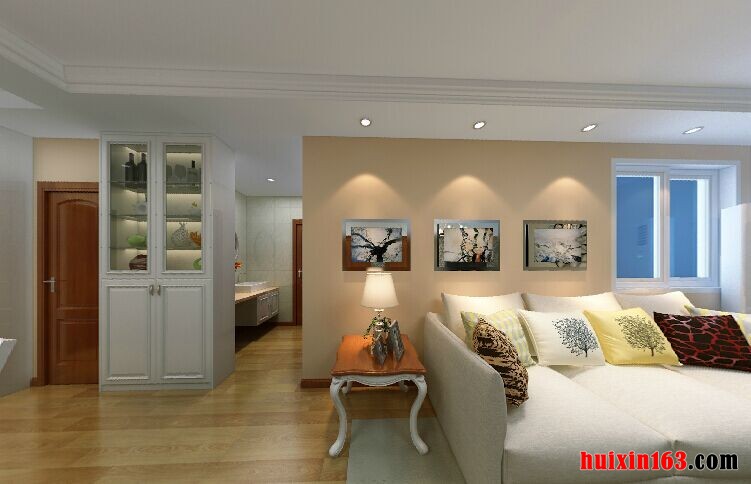 本案例是一套现代简约风格的装修设计,在整个空间的装饰布置当中,通过设计师独具匠心的设计,对格局的布置以及色彩的搭配都比较新颖别致,例如在客厅的装饰当中,采用平顶式的石膏板,背景色彩以白色为主,搭配上一盏独特别致的吊灯,让空间展现出一种别样的美感,纯白色的沙发布艺添加,搭配上色泽不一的抱枕,鲜明的色彩反差正好起到一个点缀的效果,米黄色的沙发背景墙,更是营造出一种温馨的氛围,实木铺设的地板,一束装饰花卉的添加,通过艳丽的色彩将客厅点缀得比较唯美,如果在电视柜上在适当的添置一些装饰品,其效果可能会更加完美。